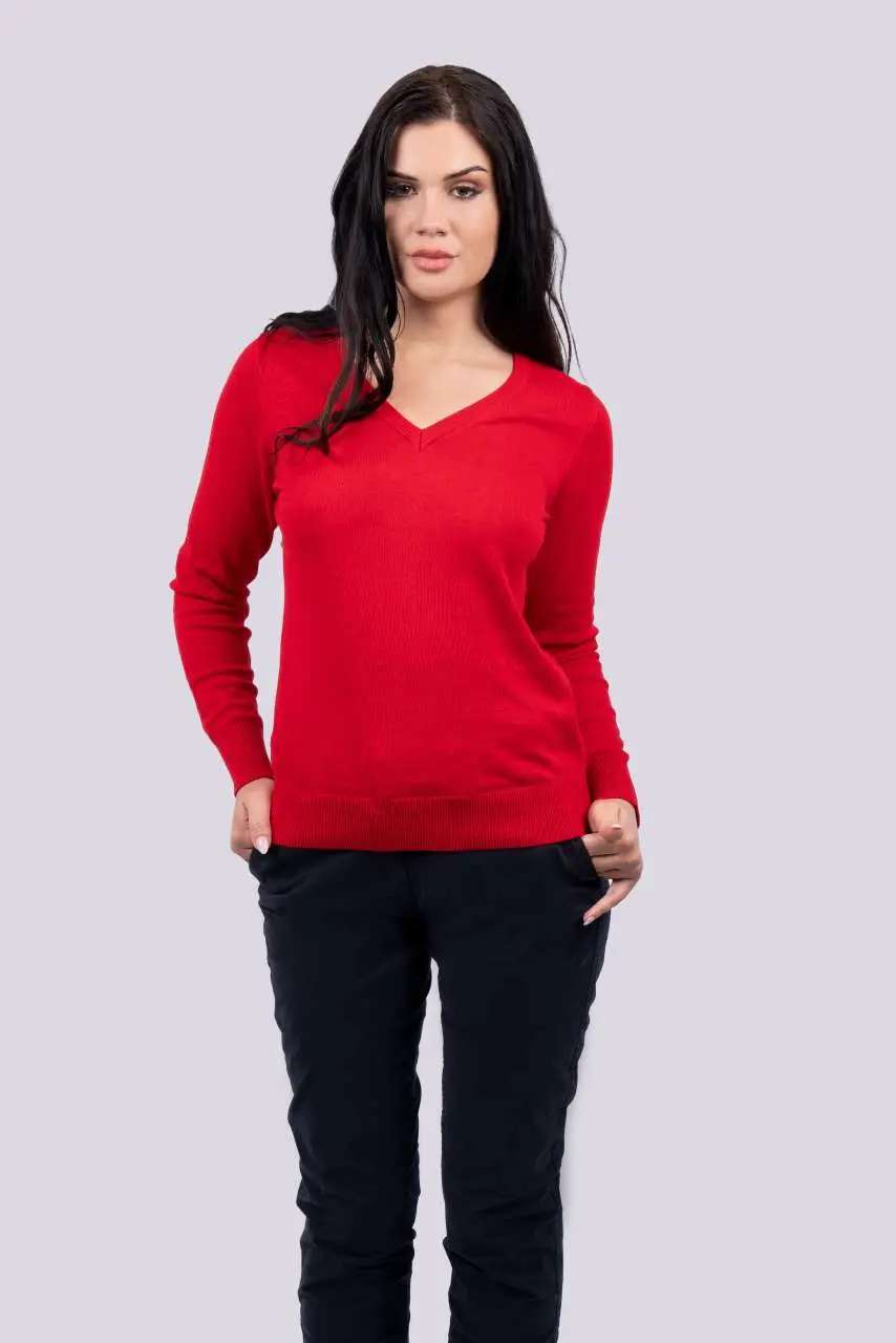 pulover od finog pamuka s v-izrezom, ženski