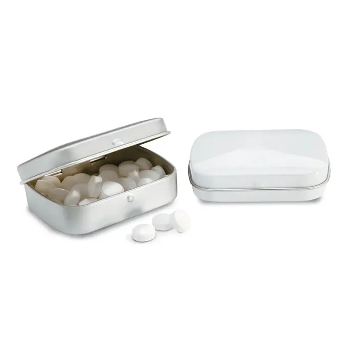 Limena kutija s otprilike 25 grama bombona od mente.