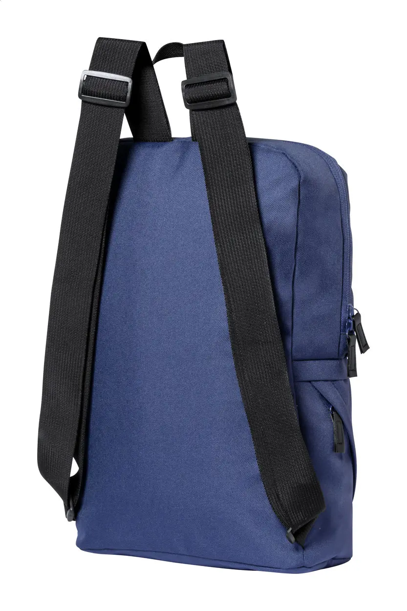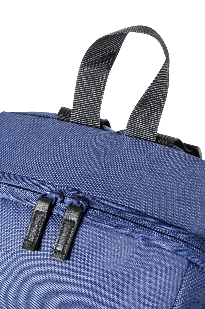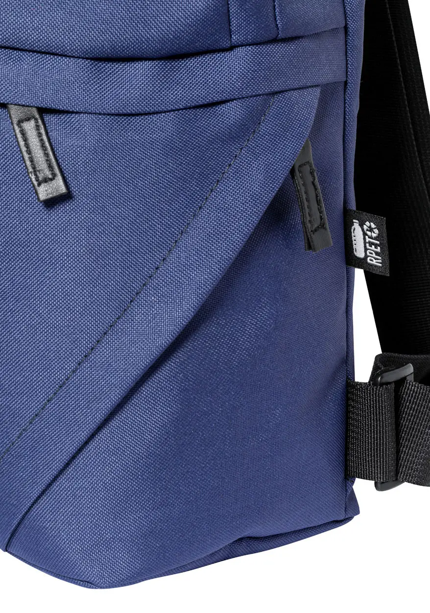 RPET ruksak s pretincima na patentni zatvarač, podstavljenim leđima i podesivim naramenicama. Izrađen od 600D RPET poliestera s karakterističnom RPET etiketom.