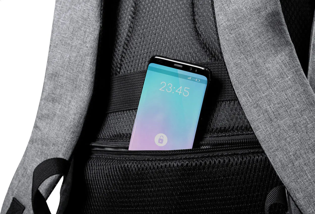 €33.31RPET ruksak s pretincima na patentni zatvarač, podstavljenim pretincem za laptop (15'') i tablet (12''), remenom za pričvršćivanje na kolica, ergonomskom stražnjom stranom i naramenicama s dodatnim skrivenim protuprovalnim džepom 600D RPET poliester
