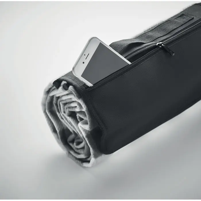 €7.86Sklopiva RPET polarna deka 150 g/m² s vodootpornom PEVA podlogom, prednji džep s patentnim zatvaračem i kratka ručka za nošenje