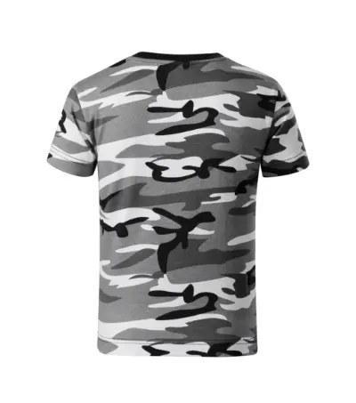 rez s bočnim šavovima, uski rub od 1:1 rebrastog pletiva s 5% elastana, unutarnja strana vrata majice s trakom u kamuflažnoj boji, fiksni šavovi na ramenima