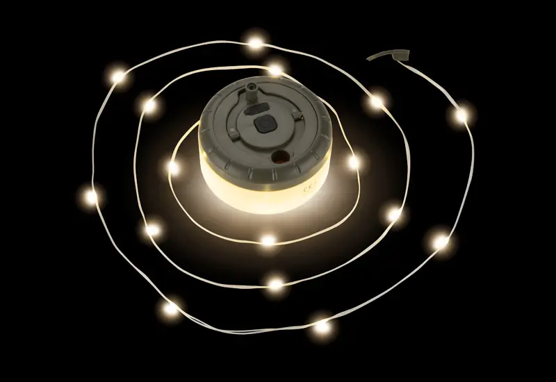€31.28The VIBER camping light is a practical 2-in-1 solution for both travelling and camping. Equipped with an expandable string of LED lights, it allows you to illuminate a larger space, creating a comfortable environment after dark. Two hooks - one at the bottom and one at the top - allow it to be conveniently hung in various locations. The light glows for up to 4 hours on a single charge, and with USB-C power, it's easy to charge in any conditions. Its compact form and functionality make the VIBER a reliable outdoor gadget that can also be branded with your company logo.