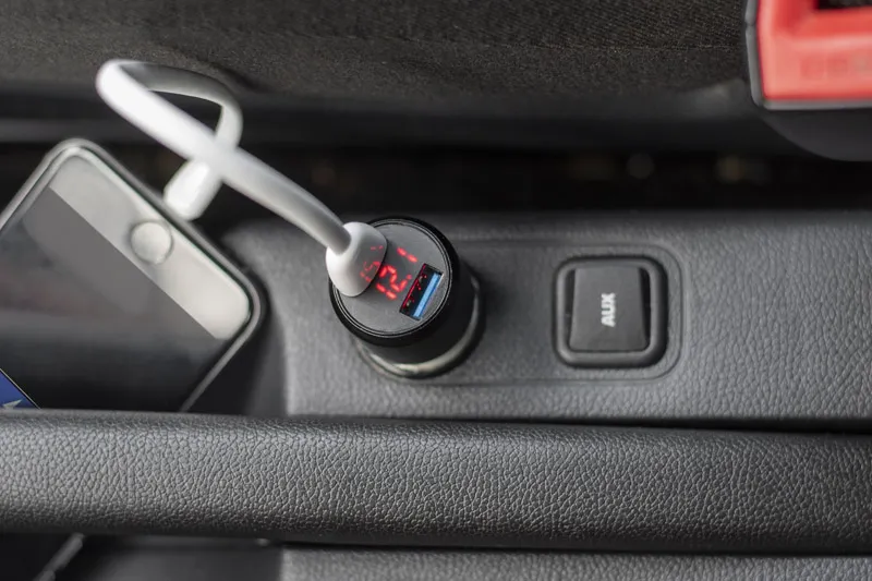 €9.61Punjač za auto s brzim punjenjem strujom 3,1 A dva USB priključka omogućuju istovremeno punjenje dva uređaja LED zaslon prikazuje trenutnu brzinu punjenja