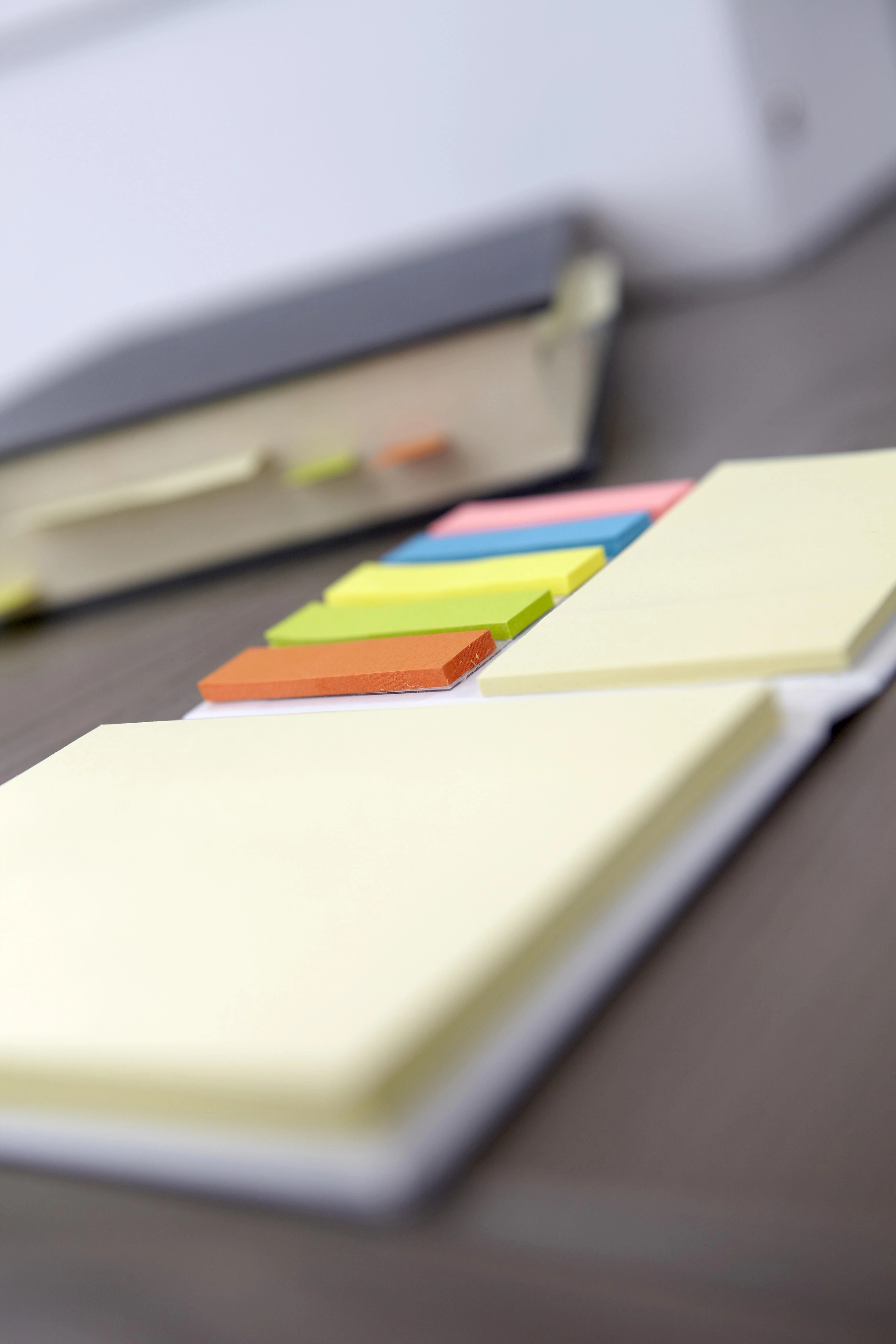 Kartonska knjižica s jednim blokom većih ljepljivih bilješki, 50 listova, jednim blokom srednjih ljepljivih bilješki, 25 listova i 5 boja malih ljepljivih bilješki, 25 listova po boji.