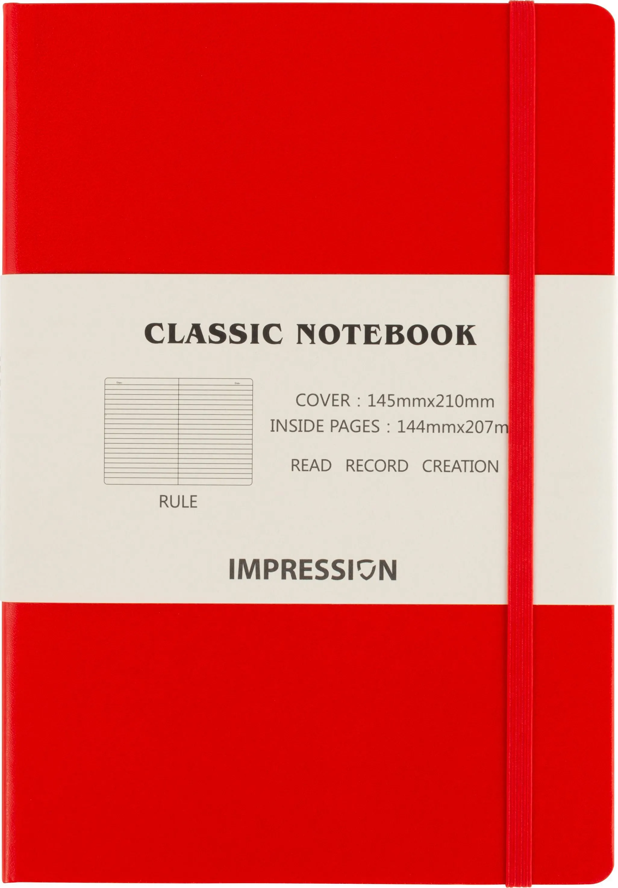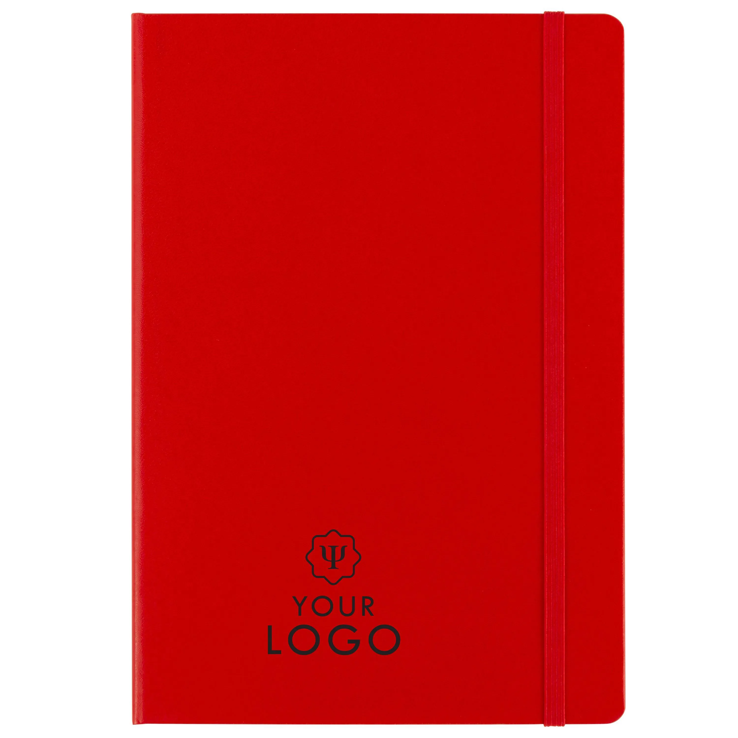 Luxurious cardboard notebook (approx. A5) with 128 lined pages, ribbon markers, elastic band over the cover and pocket on the inside of the cover. The paper in this notebook is FSC® Mix certified. Including subtle Impression hotstamp on the backside.
