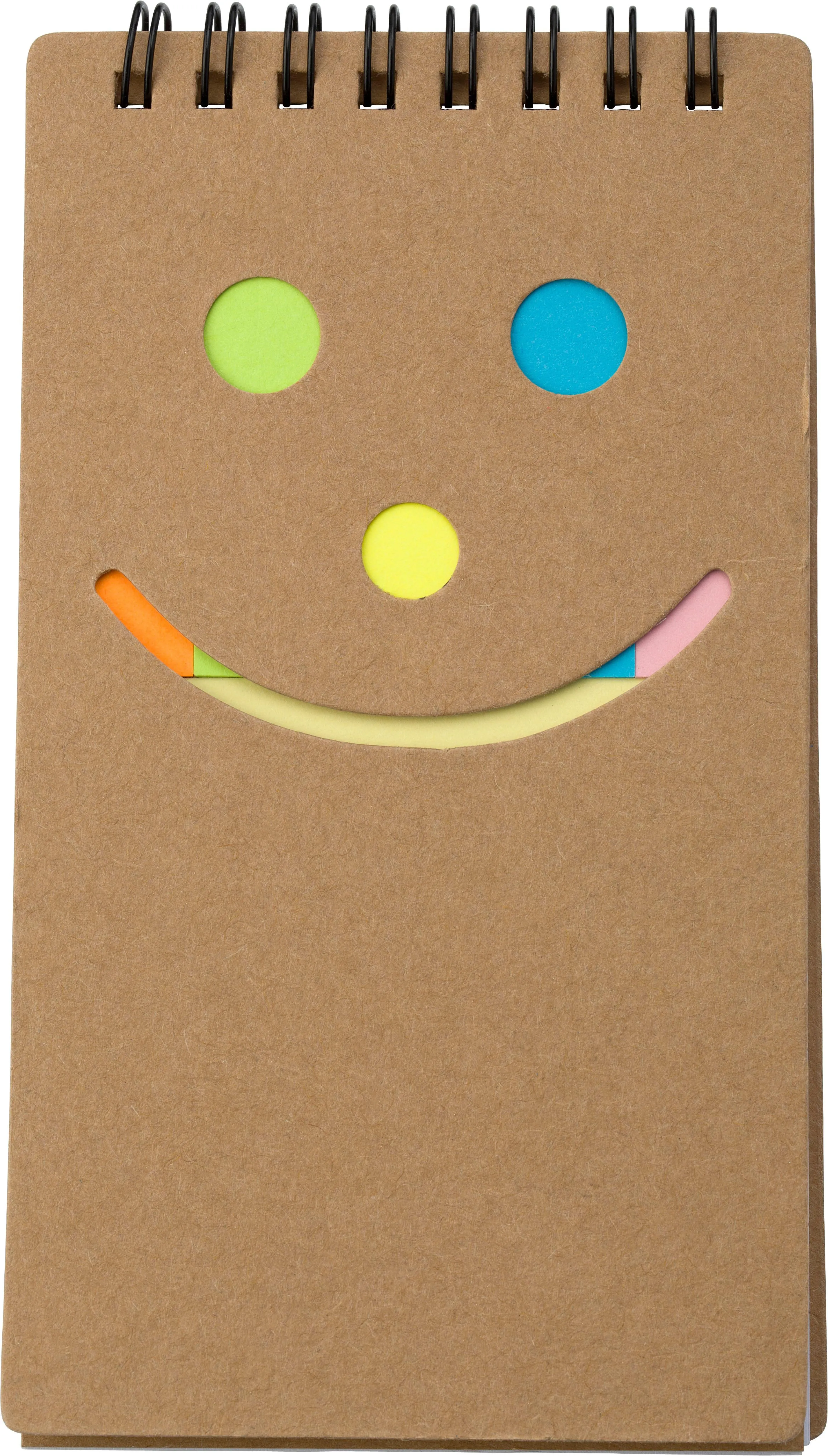 Cardboard, wire bound booklet with a total of 150 sticky notes and a notepad with 50 lined pages. The paper and the memo sheets in this notebook are FSC® Mix certified.