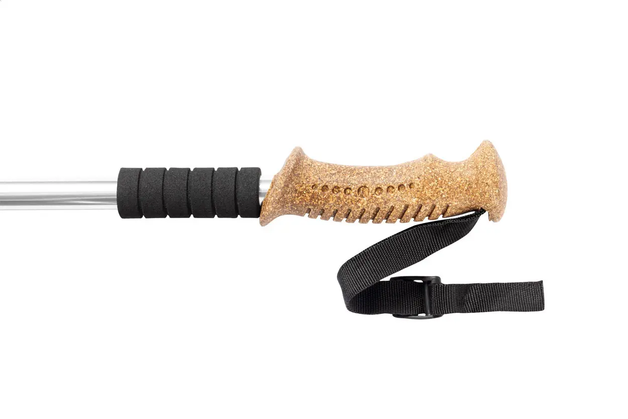 €16.66Teleskopski štap za nordijsko hodanje s aluminijskim tijelom, ergonomskom drškom od prirodnog pluta, remenom za zapešće i sustavom protiv udaraca, sa snježnom košaricom u torbi od netkanog materijala
