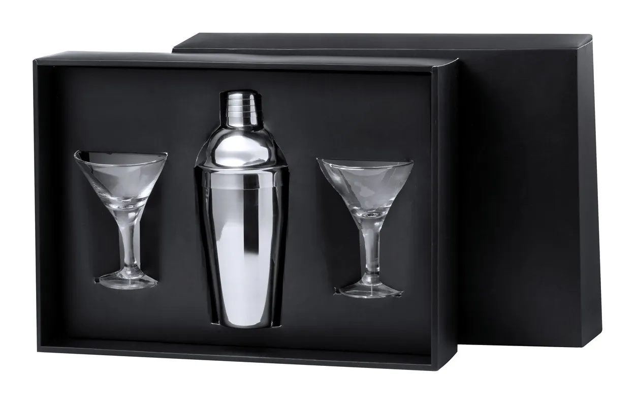 Set za koktele u gift boxu, sadrži shaker od nehrđajućeg čelika (550 ml) i 2 čaše za koktele od stakla (150 ml)