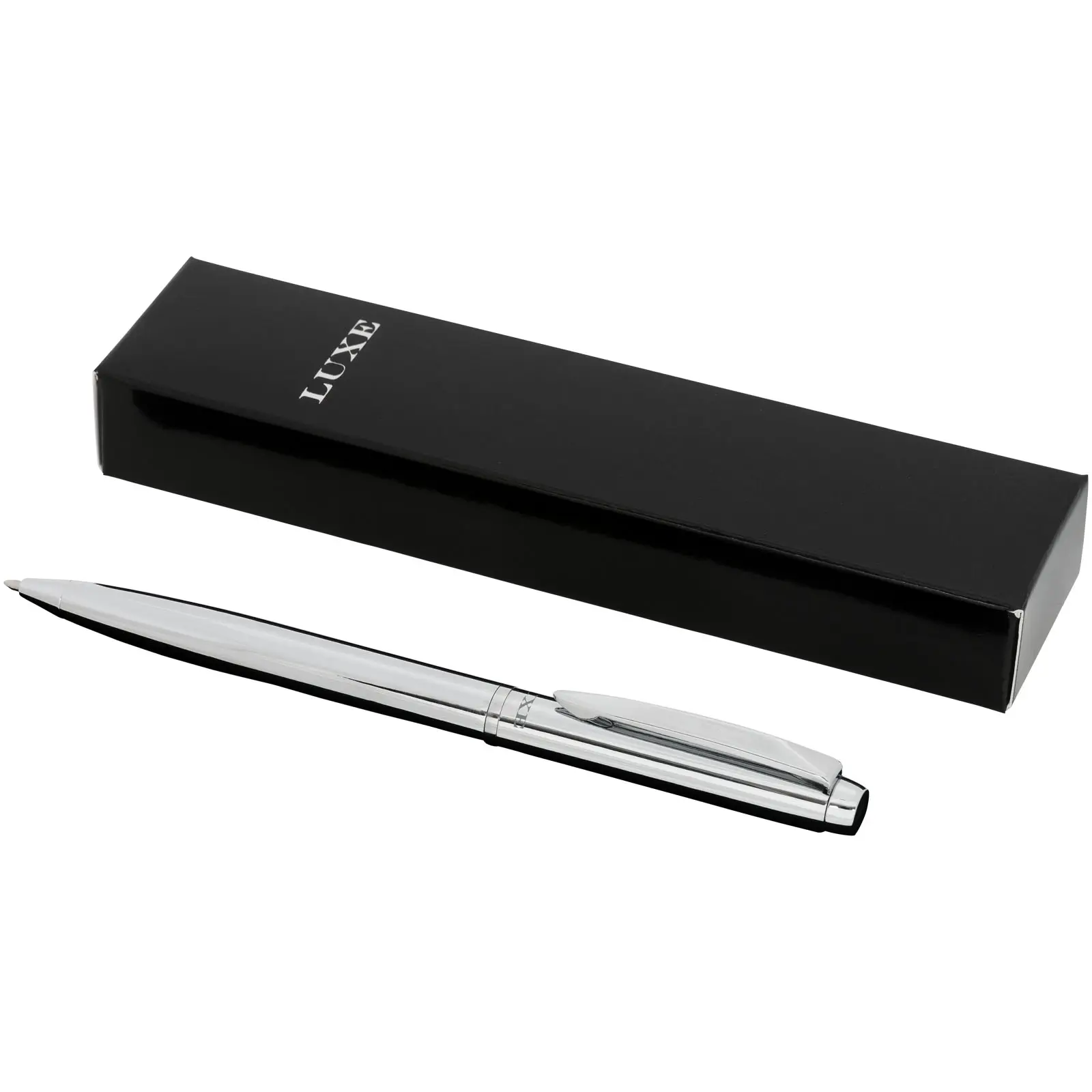 €4.35Kemijska olovka s ekskluzivnim dizajnom i sjajnim kromiranim detaljima, uključuje crni uložak visoke kvalitete, isporučuje se u LUXE gift boxu (15x3,5x2 cm)