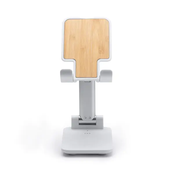 €7.41Stalak s gornjom površinom od bambusa i donjim dijelom od bijelog ABS-a omogućuje bežično punjenje pametnog telefona, podesiv je za optimalan kut gledanja, ima ugrađeni bežični punjač snage do 15W, Type C priključak, gumiranu protukliznu bazu i dolazi u eco-design kutiji
