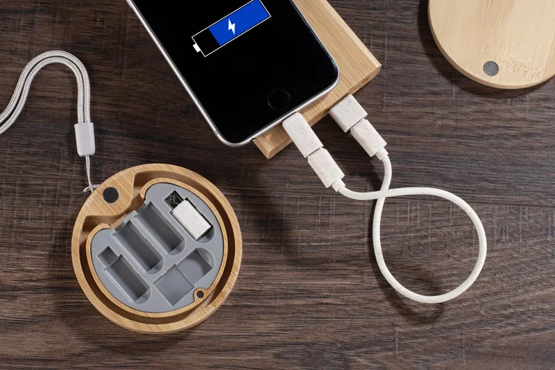 €11.34MIJATO set kabela za punjenje u okrugloj kutiji od bambusa kablovi omogućuju punjenje i prijenos podataka set sadrži 4 vrste priključaka: USB-C, USB, micro USB i adapter kompatibilan s iOS uređajima izrađeni su od pšenične slame