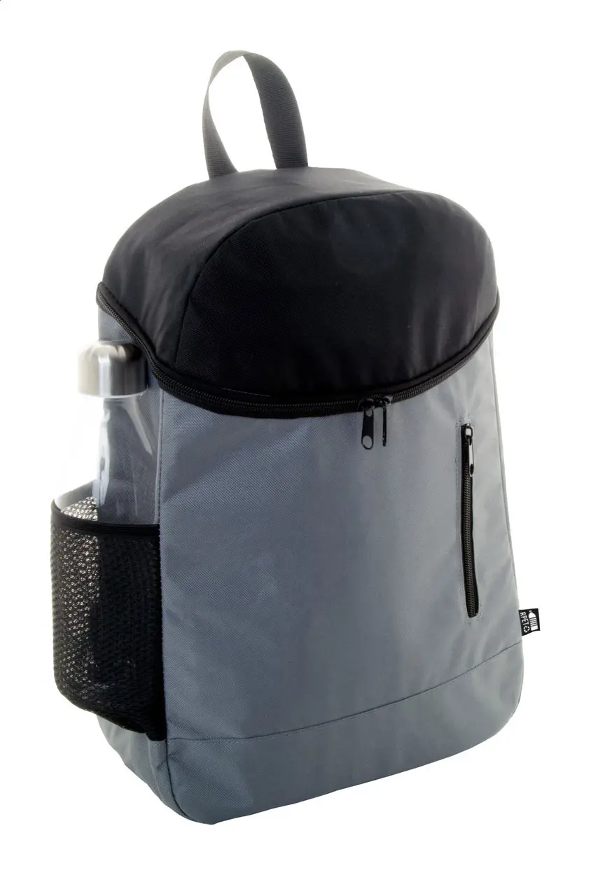 €14.43RPET termo ruksak s aluminijskom podstavom, bočnim mrežastim džepom, glavnim pretincem i prednjim džepom na patentni zatvarač, od 600D RPET poliestera s prepoznatljivom RPET etiketom