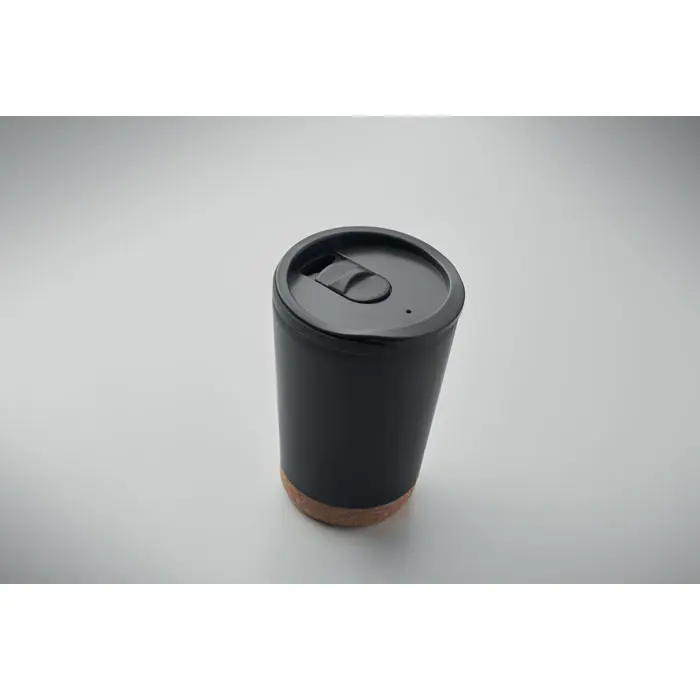 €2.37Dvostruka termo čaša od PP-a s podlogom od pluta i poklopcem s kliznim zatvaranjem od PS-a, zapremnina 300 ml