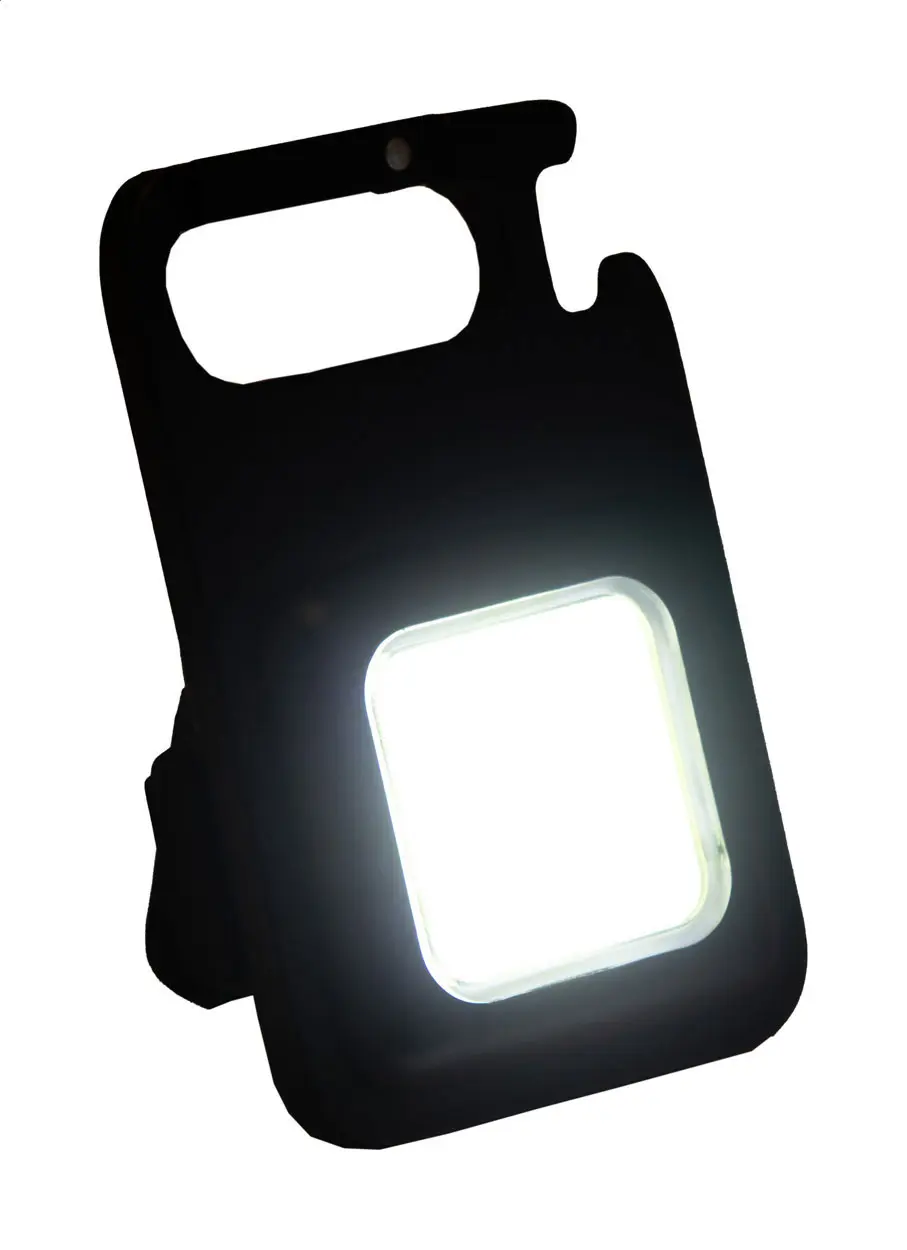 €9.25Višenamjenska aluminijska svjetiljka s COB reflektorom visoke snage i ugrađenom USB punjivom baterijom (400 mAh), s karabinerom, magnetom i otvaračem za boce, s načinima rada: jako, slabo i trepćuće svjetlo, uključuje USB kabel za punjenje