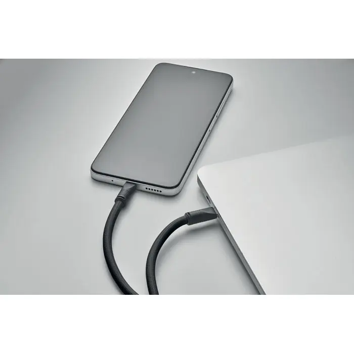 €2.81Okrugla vezica s kabelom za punjenje i prijenos podataka 60W type-C na type-C od RPET materijala, držač za mobitel i klip za ključeve