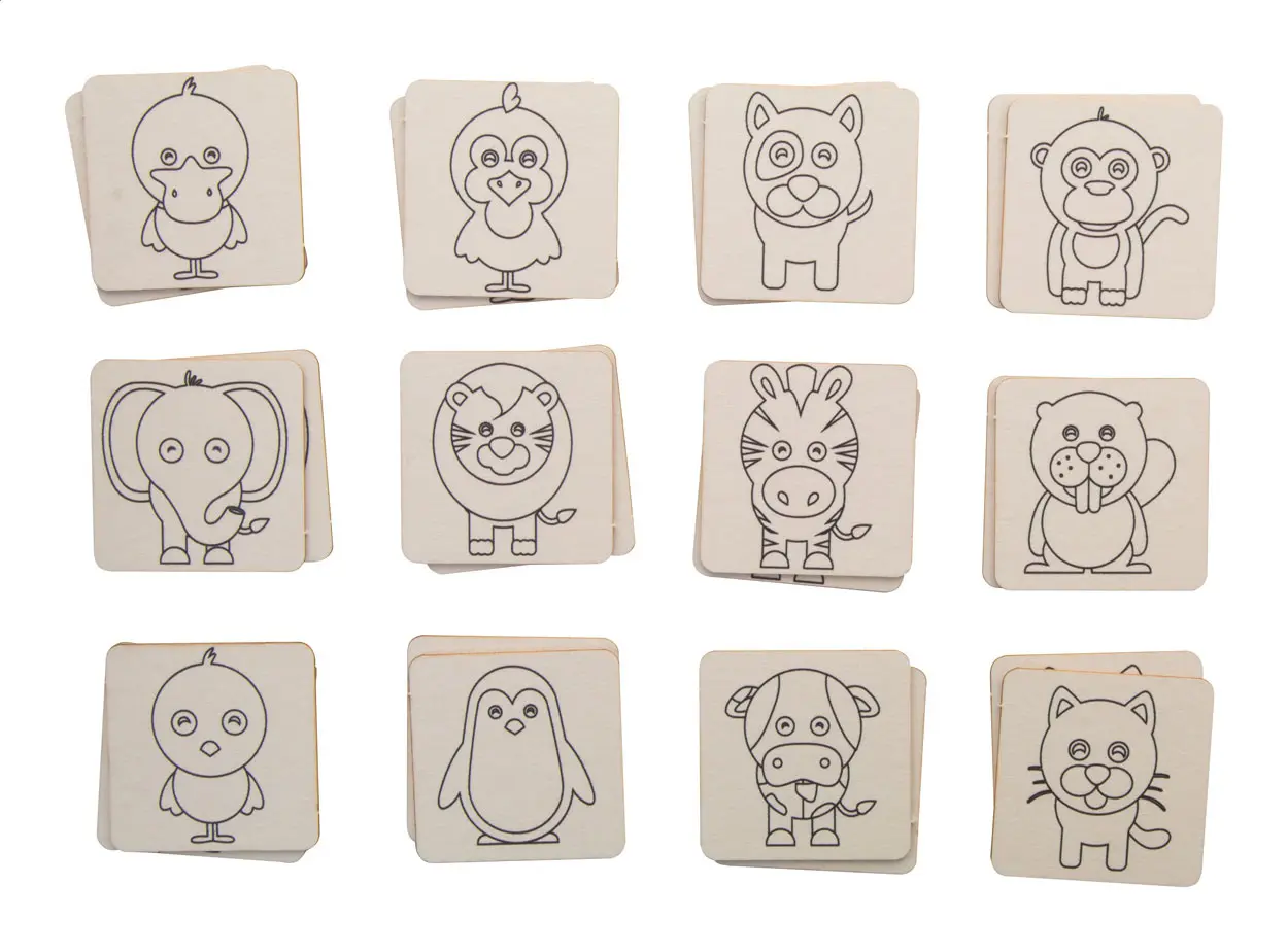 Igra memorije za bojanje u pamučnoj torbici, uključuje tematsku kartonsku igru memorije (24 pločice) i drvene bojice u boji (12 komada) u kartonskoj kutiji