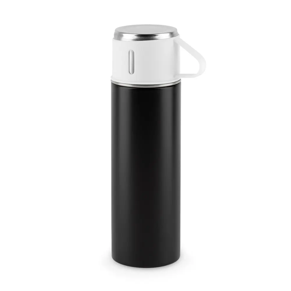 Boca od nehrđajućeg čelika s dvostrukom stijenkom (90% recikliranog materijala) i mat završnom obradom, poklopac također od nehrđajućeg čelika s mat frost završnom obradom može se koristiti kao čaša kapaciteta do 140 ml, kapacitet boce do 490 ml, ø67 x 230 mm