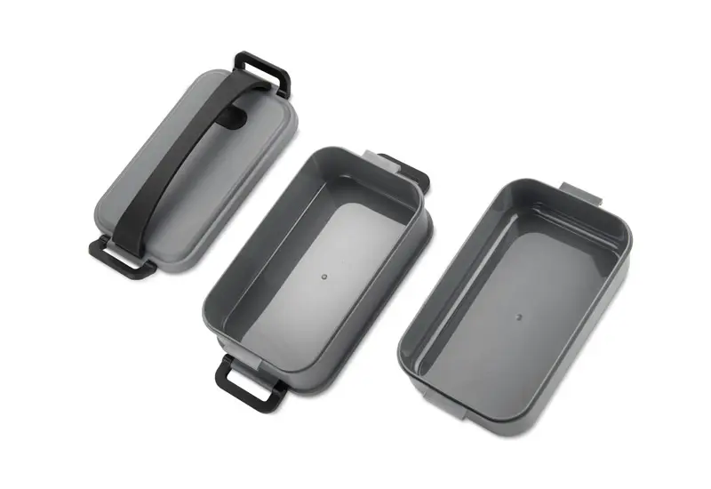 The MUNCH 1500 ml container is a practical solution for storing and carrying meals at work, school or on the move. It consists of two tiers that can be easily joined together using the elastic fastener. When folded, it takes up little space, making it easy to transport and store. The top lid has a rubber grip for increased carrying comfort. Thanks to its sturdy construction, the container keeps food well protected from spills. Ideal as a corporate gadget - available with labelling service.