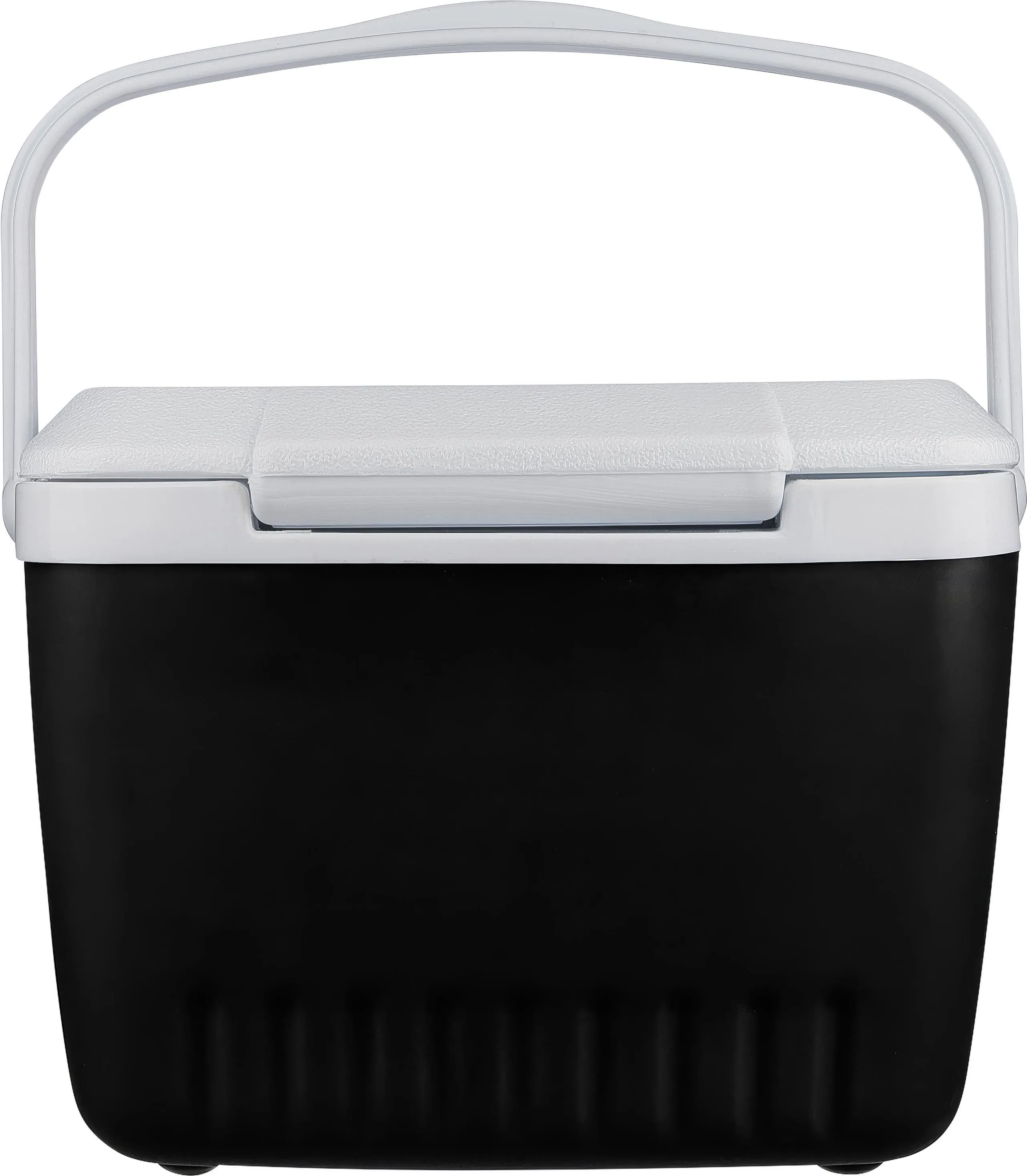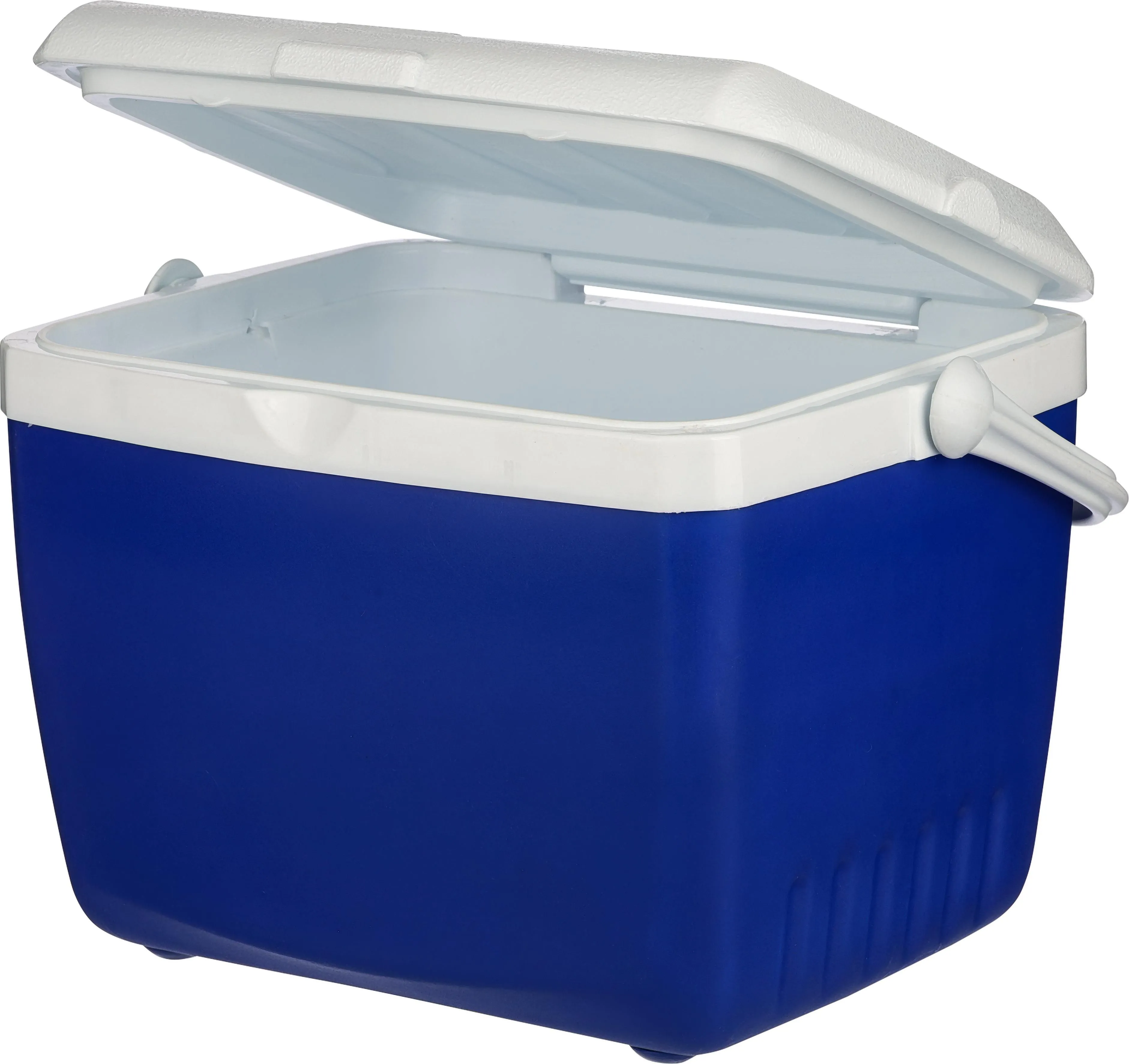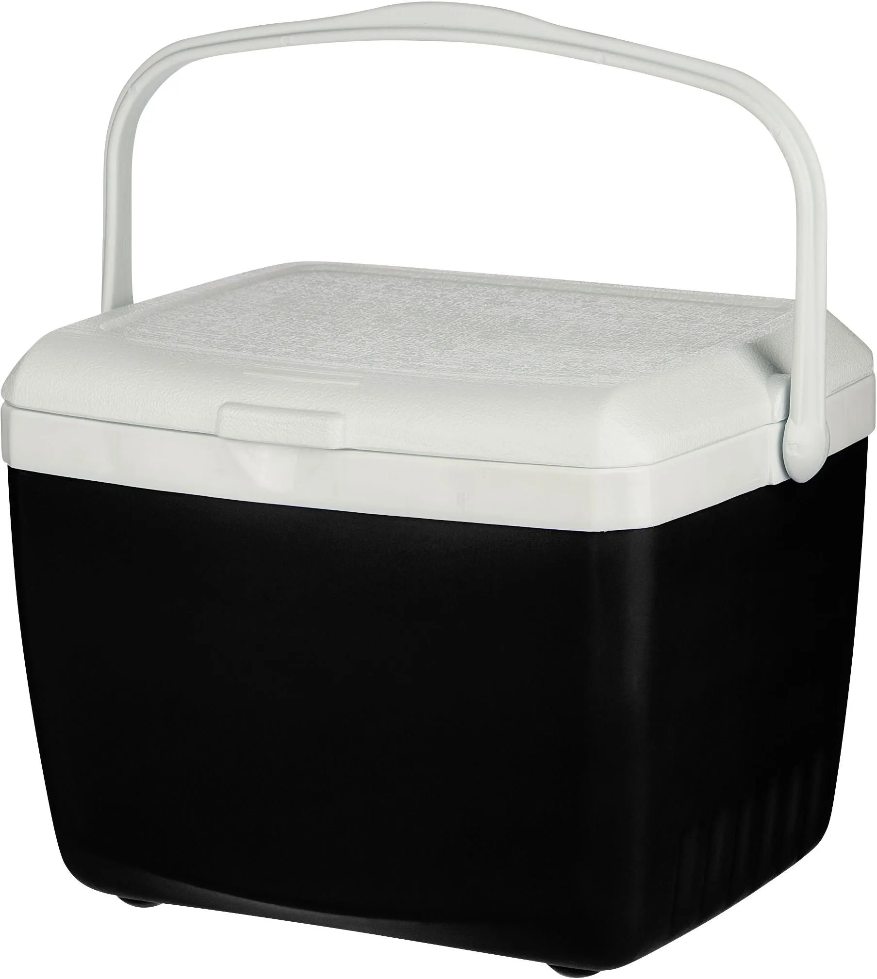 Cooler box with 13 liter capacity, made from on the inside and outside with a lid and insulation layer. Made with durable, lightweight materials (PU/PE) that resist moisture, chemicals, and everyday wear for long-lasting performance. Keeps contents cold for 8 to 12 hours and warm for 4 to 5 hours. Designed to fit a 1.5 liter soda bottle diagonally. Equipped with a sturdy handle for easy transport.