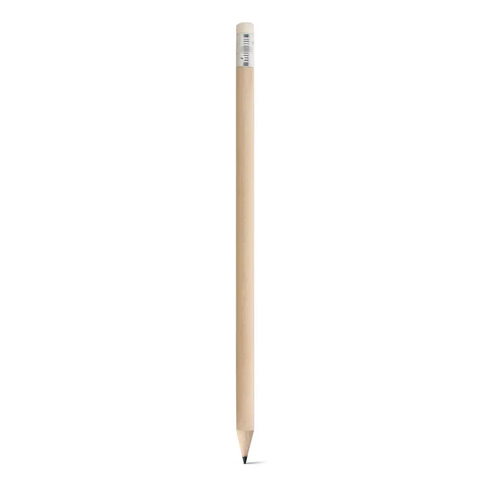 Sharpened wood and graphite pencil with rubber. Degree of hardness: HB. ø7 x 190 mm