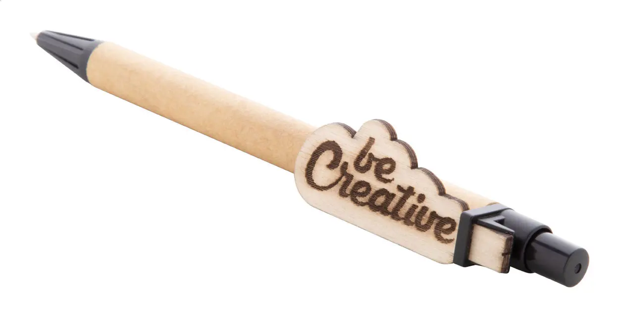 €1.19Kemijska olovka od recikliranog papira s prilagođenim drvenim klipom i plavim punjenjem. Klip je izrađen u prilagođenom obliku - maksimalna veličina: 25×35 mm. Cijena uključuje graviranje logotipa na klipu. Minimalna količina za narudžbu: 100 komada.