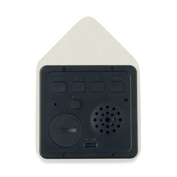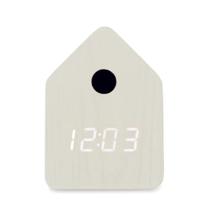 €14.66Mali MDF stolni sat s ugrađenim alarmom s kukavičjim glasom ptice i prikazom temperature, kukavičji glas svakog punog sata i tijekom alarma, bijeli LED zaslon, automatsko utišavanje zvuka između 22:00 i 06:00, interval odgode 5 minuta