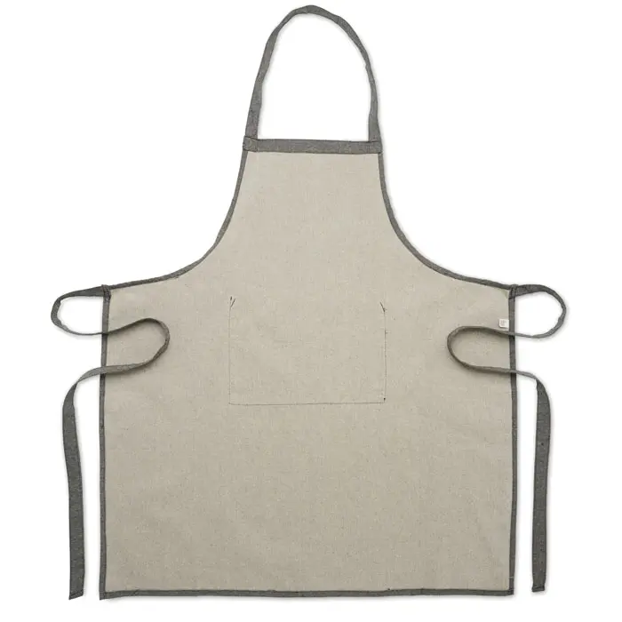 €3.70Podesiva pregača za kuhinju s 1 prednjim džepom od recikliranog pamuka 220 gr/m². 80% reciklirani pamuk, 20% obični pamuk.