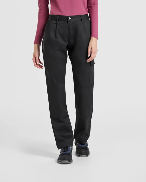 €14.61Women's multi-pocket long trousers.· Durable fabric.· Elasticated waistband on the back with belt loops.· Two pleats under the two front belt loops.· Reinforcement pieces on the knees.· Two front hip pockets.· Two back pockets with flap and Velcro closure.· Two cargo pockets with flap and Velcro closure.· Reinforced crotch panel.· Outer Roly WRK label.