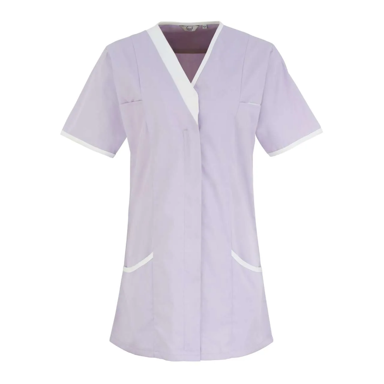 Tkanina: 65% poliester, 35% pamuk keper, 195 g/m2, V-izrez s kontrastnim obrubima, skriveni prednji patentni zatvarač, skriveno kopčanje iznad zatvarača, nabori sa strane i straga za prilagođeni kroj, zaobljeni bočni džepovi s kontrastnim obrubom