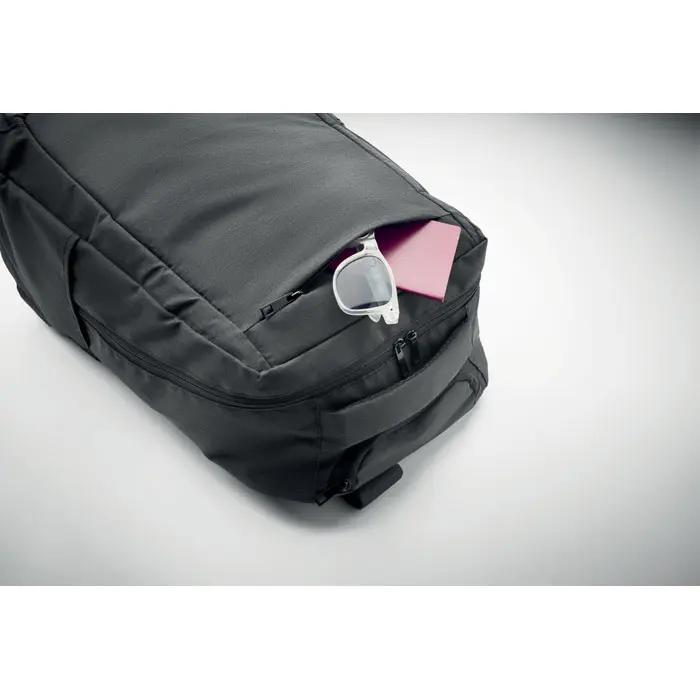 €36.89Ruksak za laptop na kotačima izrađen od 600D RPET poliestera. Uključuje unutarnji pretinac za laptop od 15 inča. Prednji džep na patentni zatvarač. Dva bočna džepa. Tri unutarnja džepa. Podstavljena leđa i naramenice. 2 kotača i dvostruka cijevna konstrukcija.