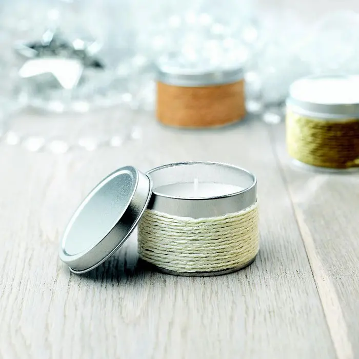 Mirisna svijeća od biljnog voska 60 g u ukrasnoj limenoj kutiji