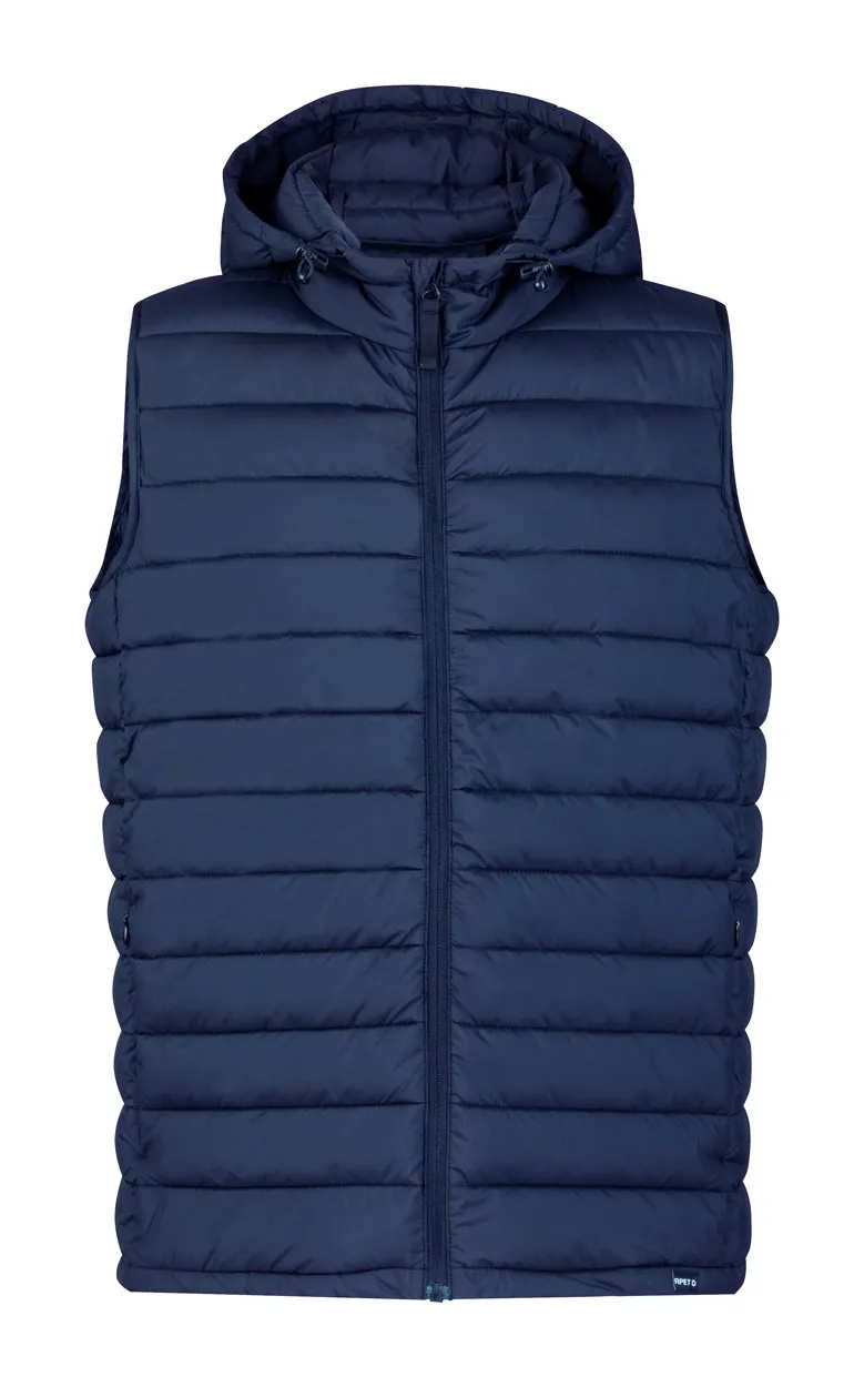 Prsluk bez rukava otporan na vjetar i vodu s unutarnjom podstavom od 100% RPET poliestera pakiran u rPET vrećici