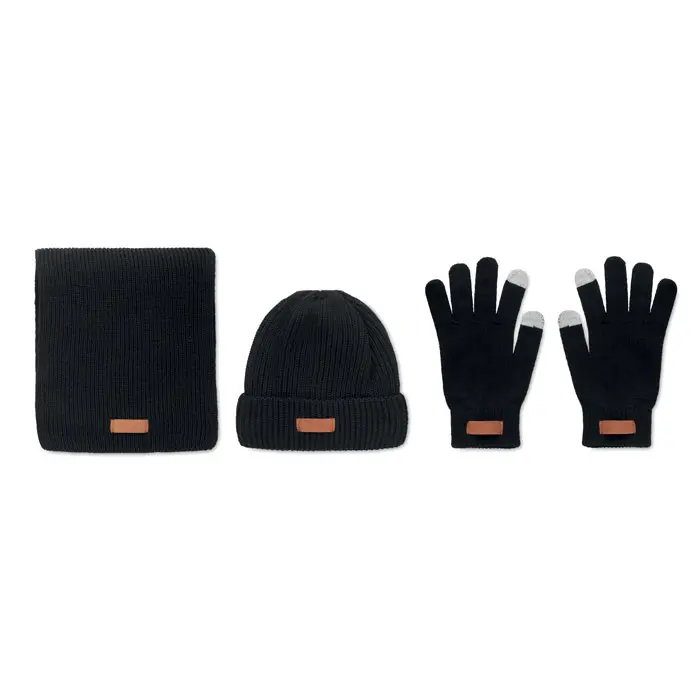 Zimski set od 3 dijela uključuje RPET kapu, šal i rukavice osjetljive na dodir s etiketom za područje tiska
