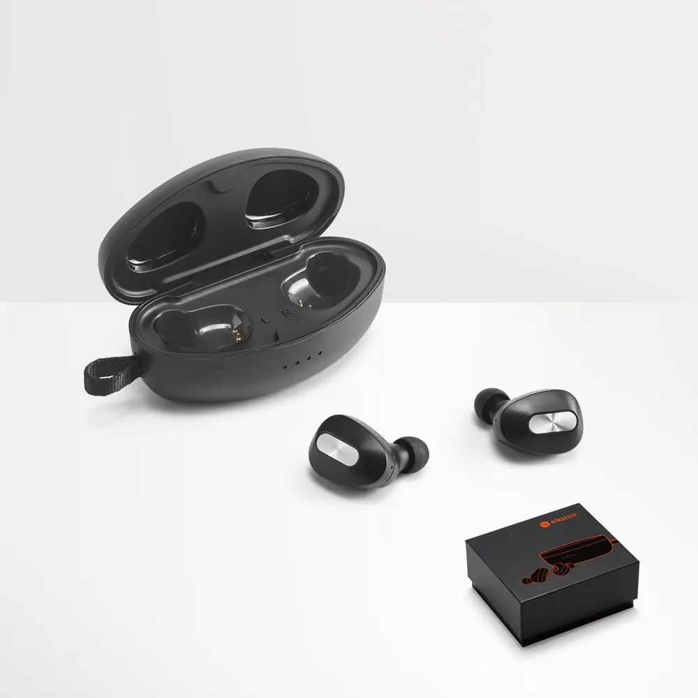 €17.78Bežične slušalice s mikrofonom i diskretnim dizajnom, autonomija oko 3 sata reprodukcije i do 300 sati u stanju pripravnosti, materijal ABS, bežični prijenos BT V5.0, kapacitet 500 mAh, funkcije: hands-free pozivi i upravljanje playlistom s mobilnog uređaja, isporuka u gift box kutiji 31 x 78 x 38 mm, kutija za punjenje 79 x 40 x 32 mm, kutija 128 x 110 x 58 mm