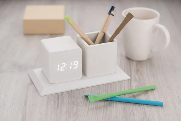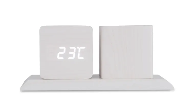 €27.87Organizator za stol izrađen od MDF ploče s modernom završnom obradom u svijetloj boji drva uklapa se u suvremene interijere ima spremnik za olovke i sat s funkcijama: kalendar, alarm i termometar
