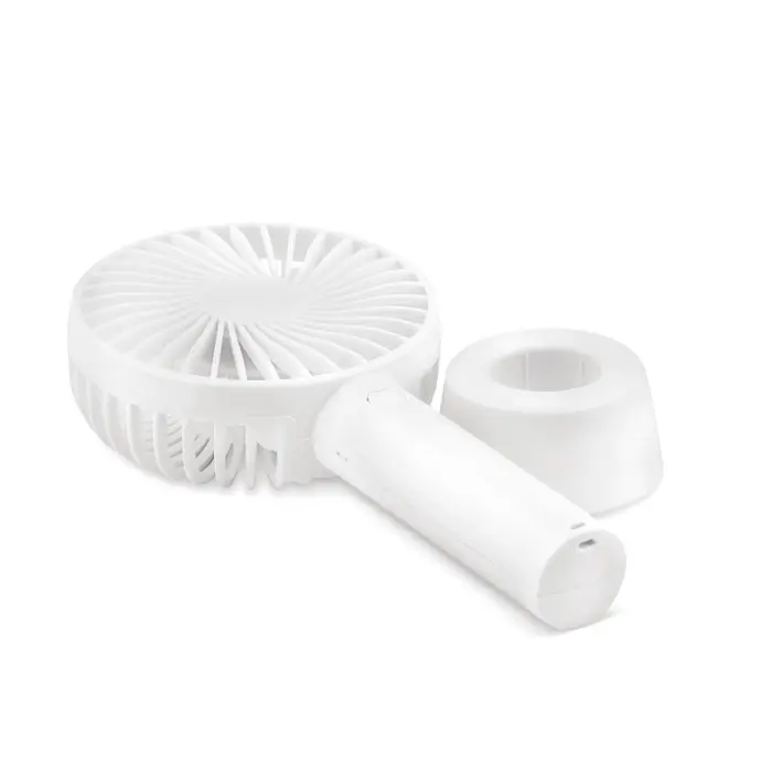 €6.88Mali prijenosni ventilator s dodatnim postoljem za upotrebu kao stolni ventilator. 3 postavke brzine. Punjiva baterija preko USB priključka kapaciteta 2000 mAh.