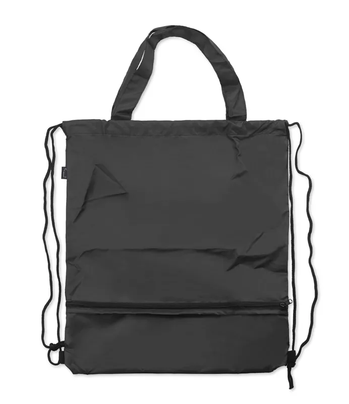 €13.61Vrećica s vezicom RAINY napravljena je od RPET poliestera, što je čini ekološki prihvatljivijom. Središnji dio vrećice je jednokomoran. Osim tradicionalnih vezica, ima i ručke dužine 44 cm, pa se može koristiti i kao shopping torba. Na dnu vrećice nalazi se džep s patentnim zatvaračem u kojem je skriven priloženi kišobran, također izrađen od RPET poliestera.