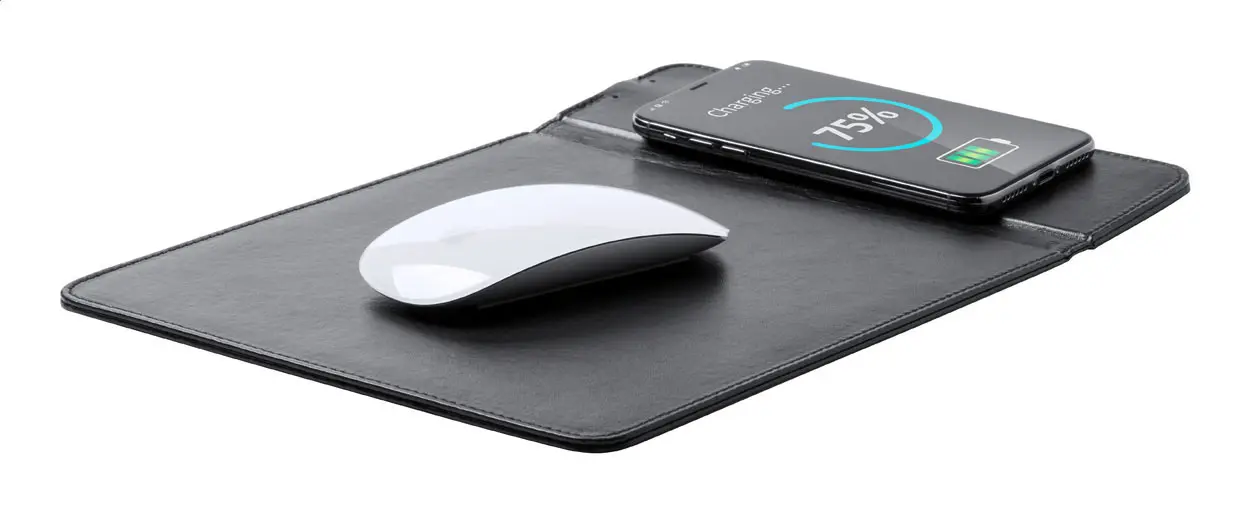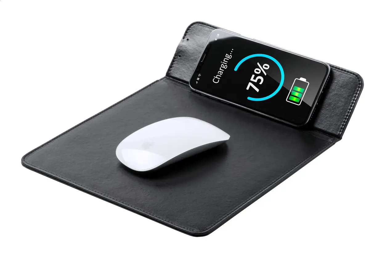 Podloga za miš od PU kože s ugrađenim bežičnim punjačem (5W) i držačem za mobitel, uključuje USB kabel za punjenje