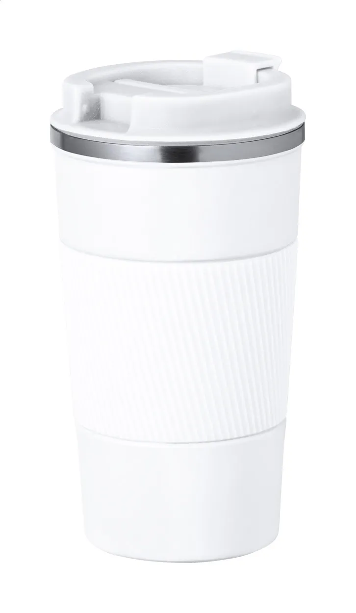Dvostruka stijenka termo šalica od nehrđajućeg čelika s poklopcem za piće i silikonskom trakom 400 ml