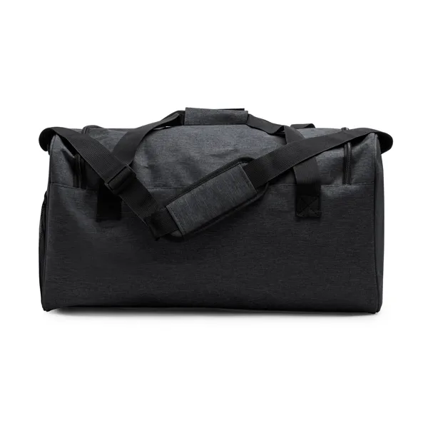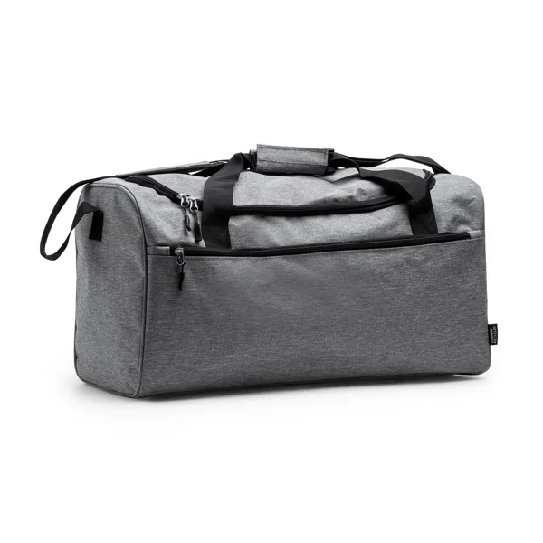 Višenamjenska torba izrađena od 300D RPET materijala u dizajnu s heather završnom obradom. Kapacitet 30 litara. Glavni i prednji džep s patentnim zatvaračem. Bočni džep od mrežice. Uključena podesiva naramenica.
