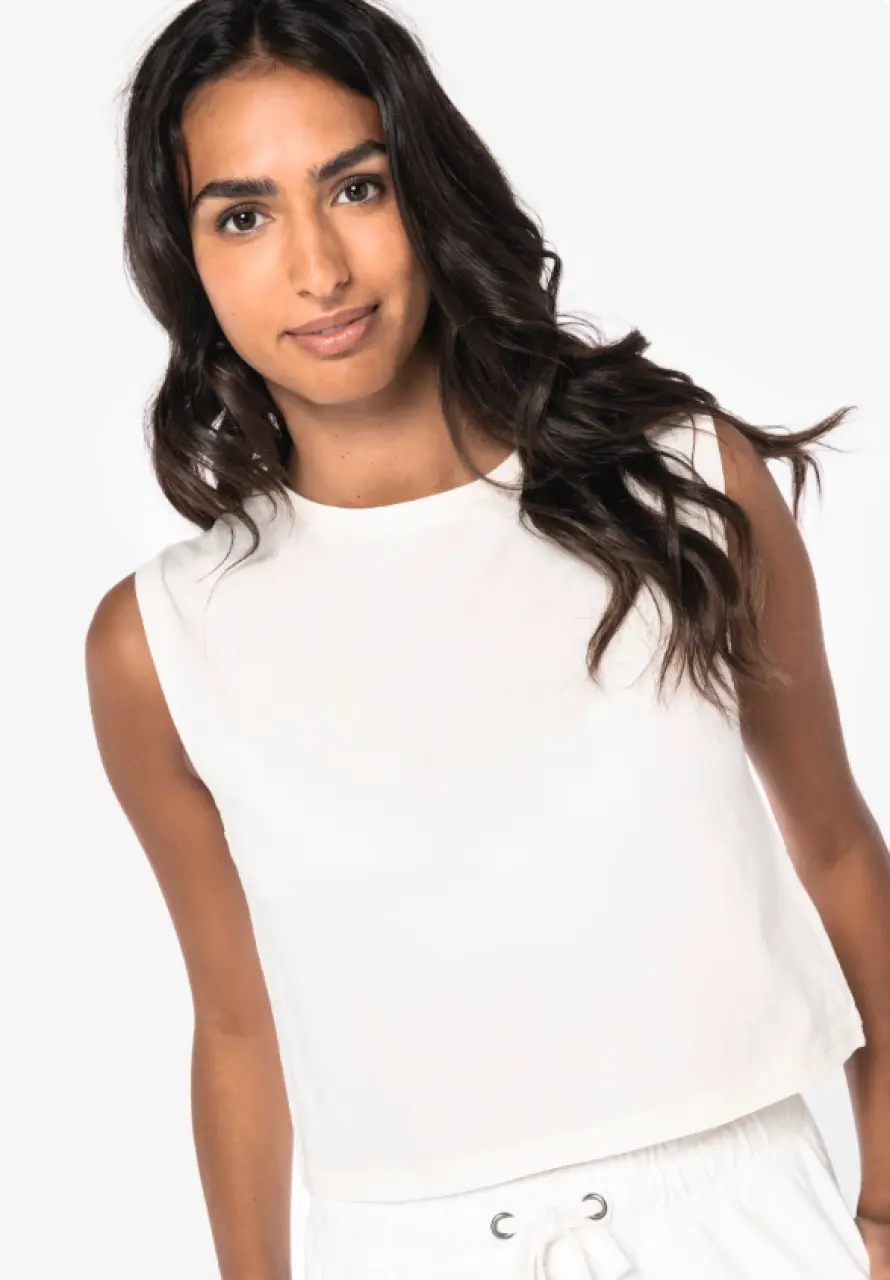 eco-friendly ladies’ sleeveless crop t-shirt