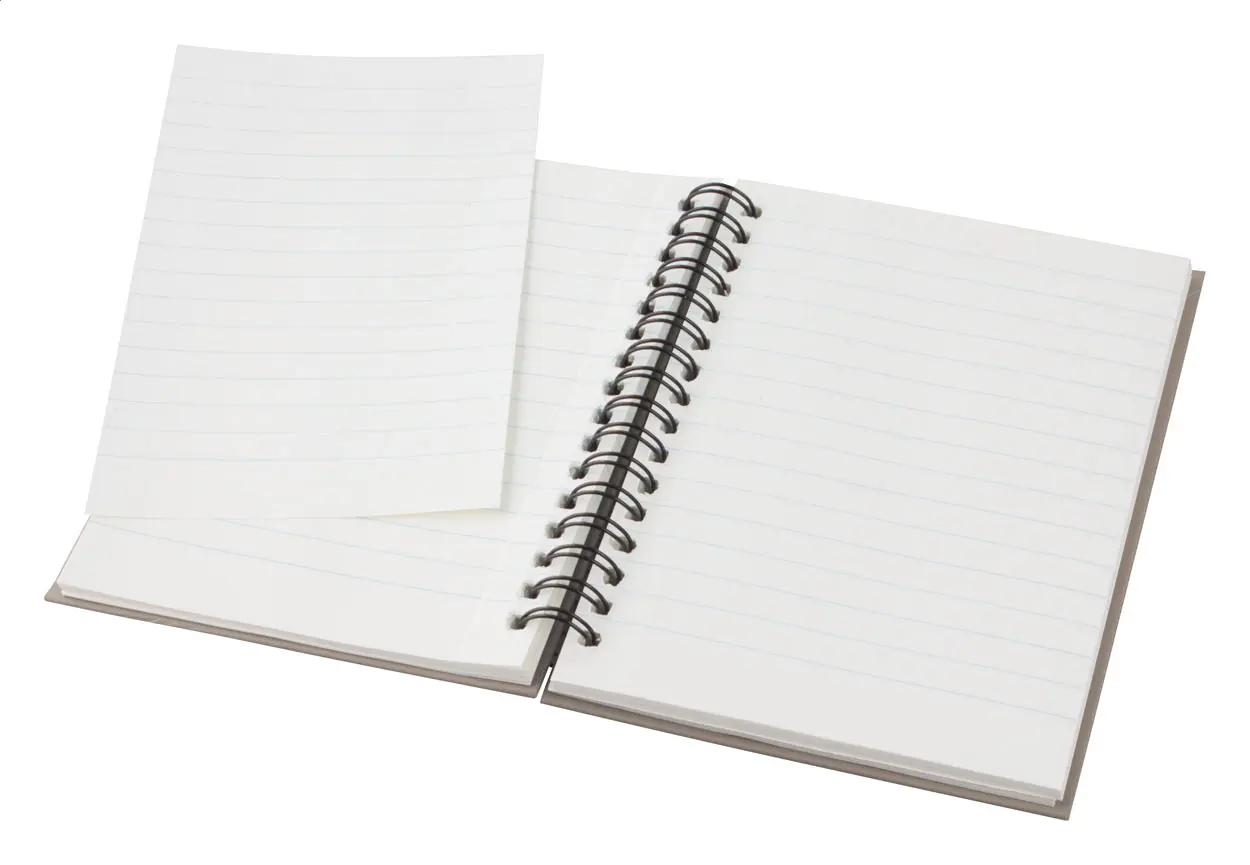 Bilježnica s koricama od recikliranog papira i spiralnim uvezom, 80 liniranih listova, A6.
