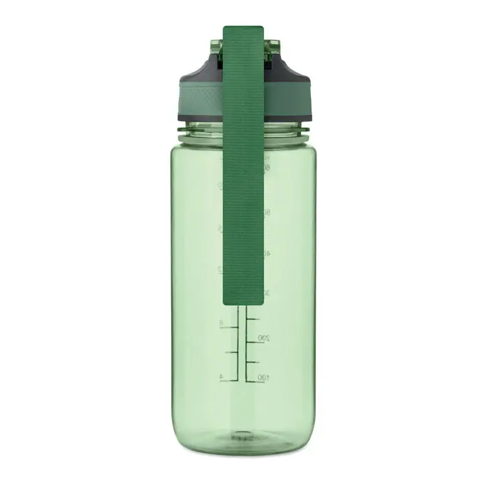 €4.66Motivacijska sportska boca za vodu od RPET-a s integriranom slamkom mekanim silikonskim nastavkom za usta poklopcem na preklop za otvaranje jednom rukom sigurnosnom bravom i remenom za nošenje od RPET satena kapacitet 700 ml ne propušta