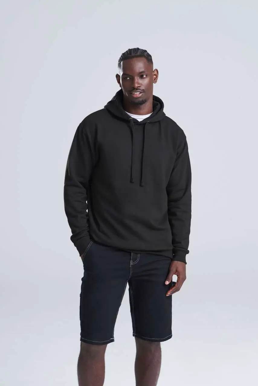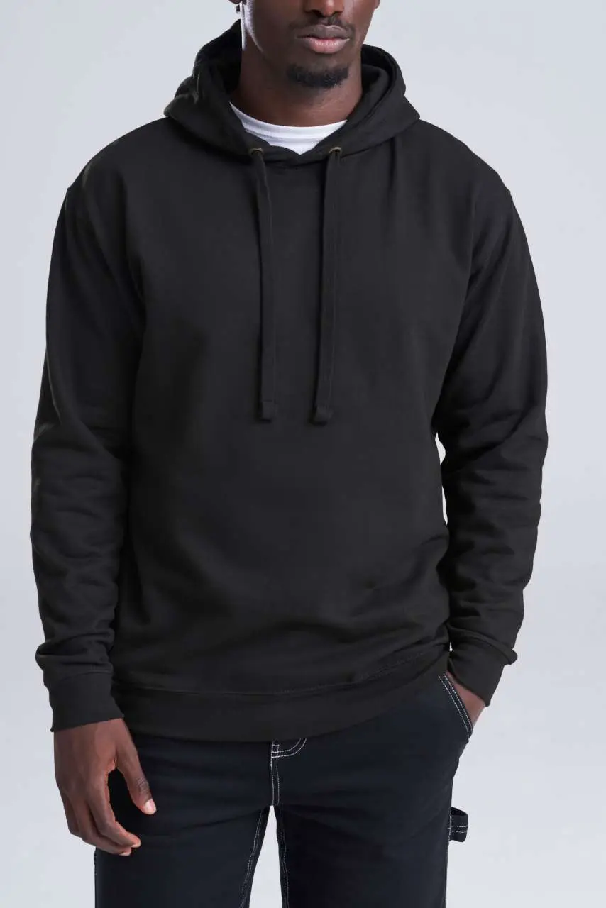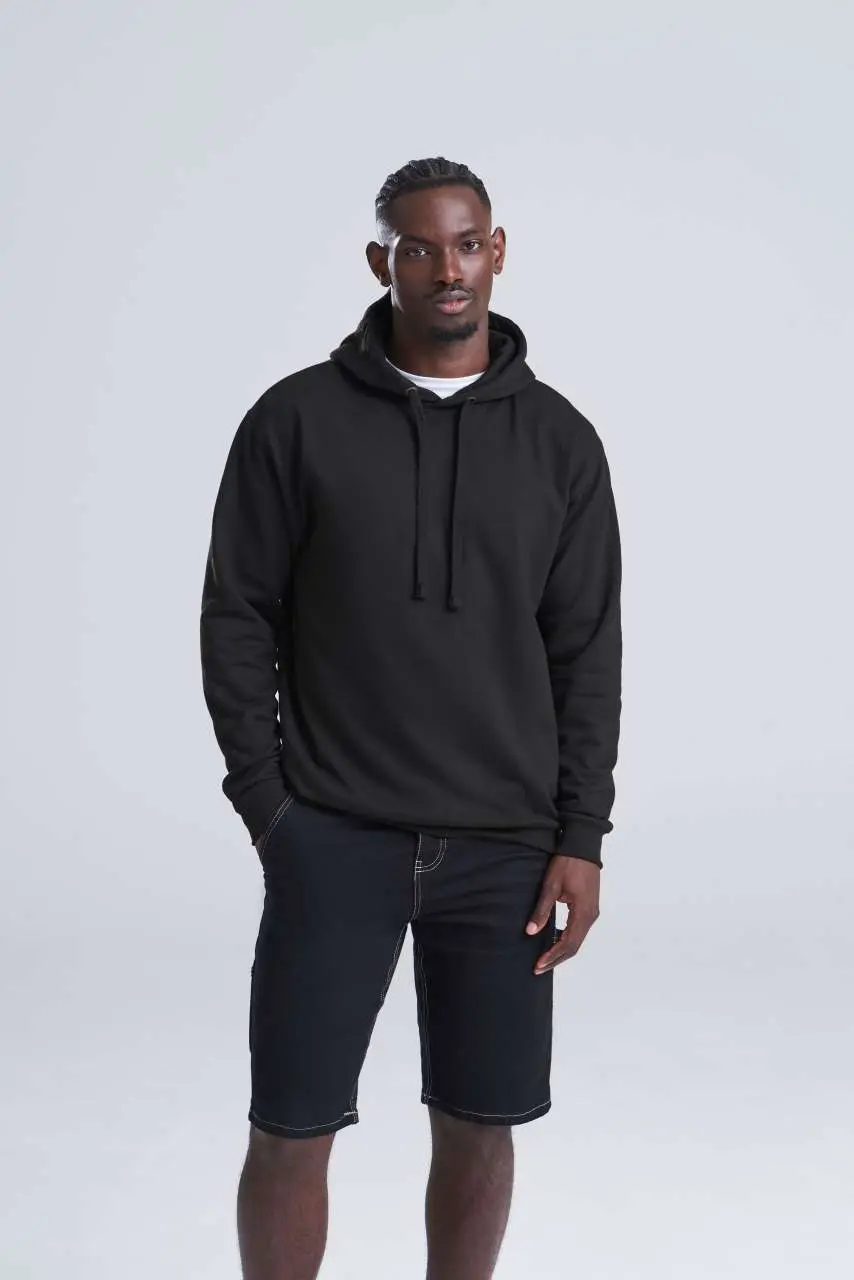€12.7080% pamuk ring-spun, 20% poliester, opušteni kroj, dvostruka tkanina na hoodieu, ravne vezice, bez džepa za maksimalnu površinu za tisak, brušena unutarnja strana, rebraste manšete i donji rub, dvostruki šavovi, odvojiva etiketa, površina od 100% pamuka