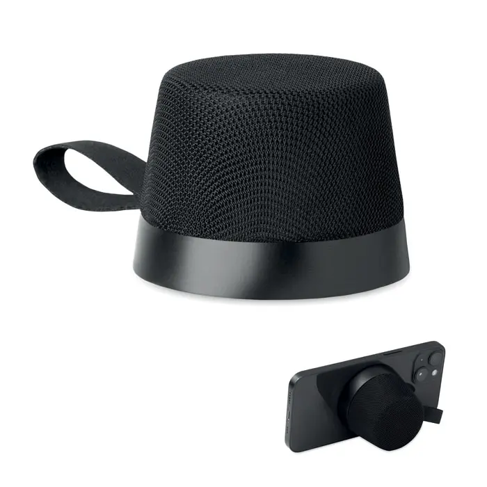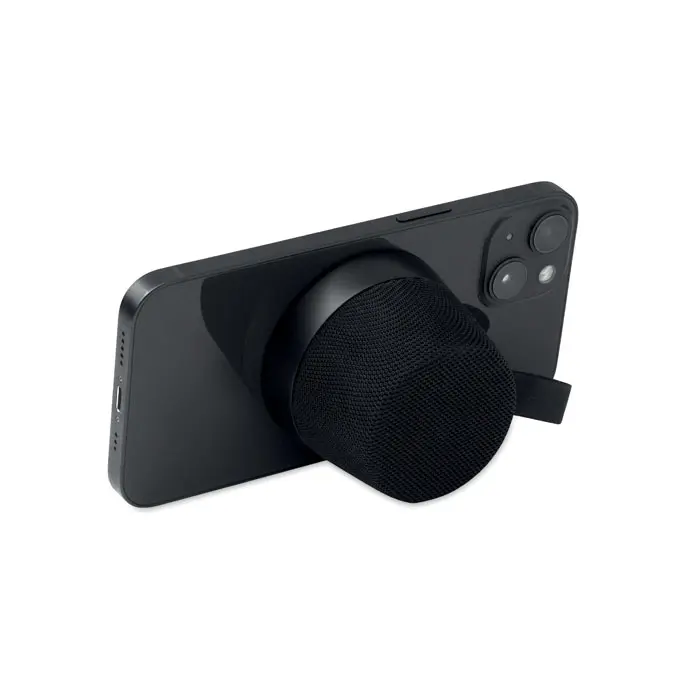 €7.324.2 bežični zvučnik u kućištu od ABS-a, RPET poliesterska tkanina i omča, magnet na stražnjoj strani omogućuje funkciju stalka, uključena punjiva Li-ION baterija 300 mAh, izlaz: 3W, 4 Ohm, 5V, vrijeme reprodukcije cca 2 sata