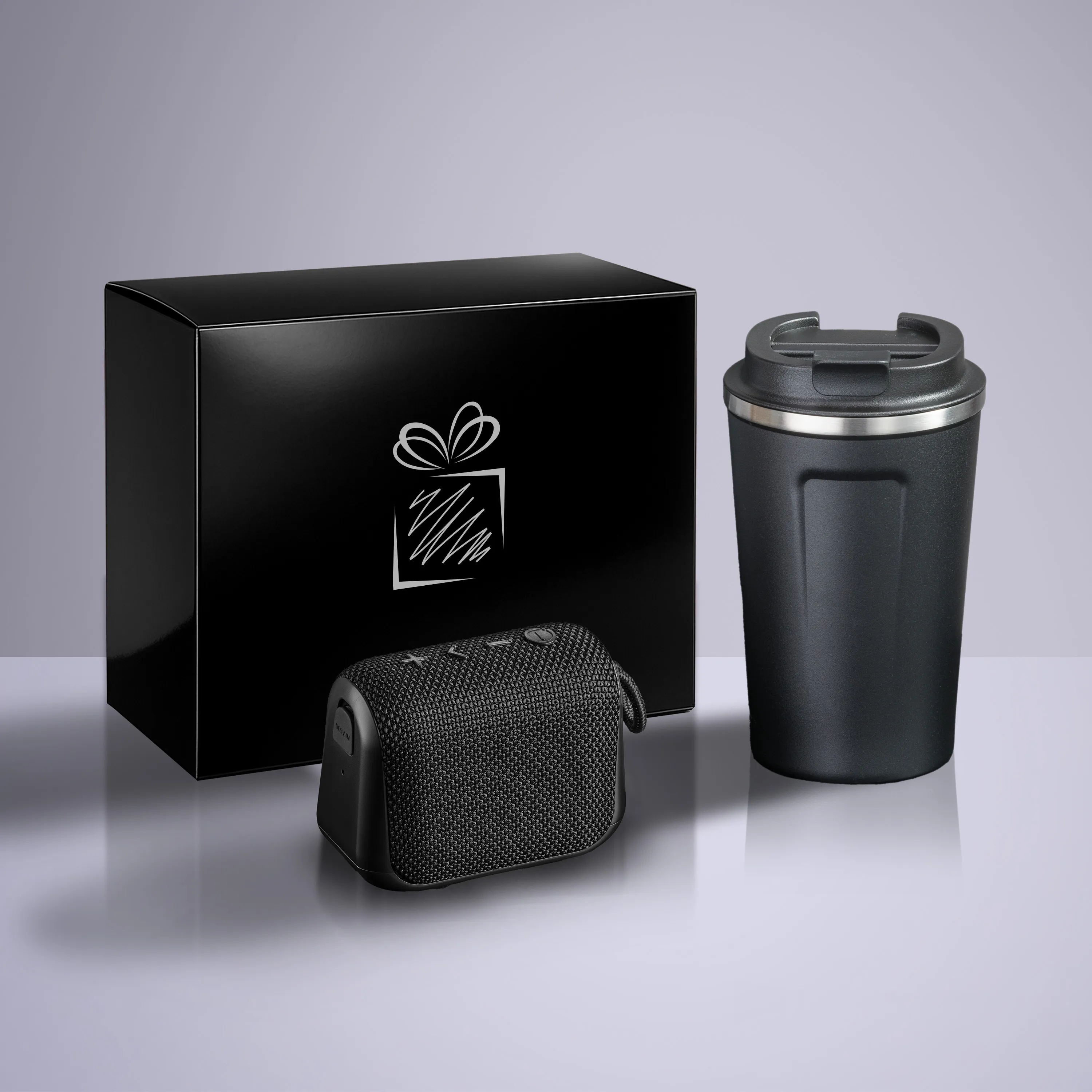 The set includes the Nordic thermal mug and the Colorissimo® Bluetooth speaker, ideal for work, travel, and leisure. Elegantly packaged, it makes a stylish and practical gift.