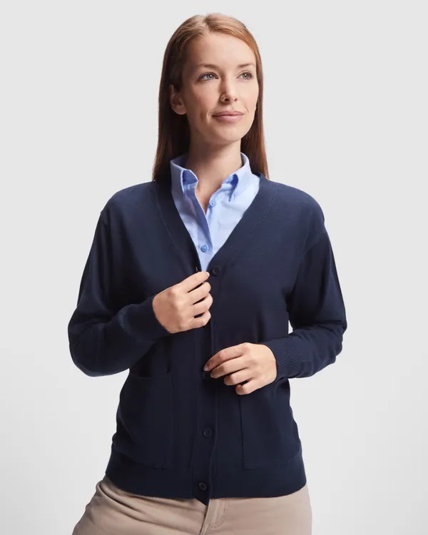 €14.96Ženski kardigan s prednjim gumbima za kopčanje (5 ton-na-ton gumba).· V izrez.· Fino pletivo.· Dva našivena džepa.· 1x1 rebraste manšete i rub.