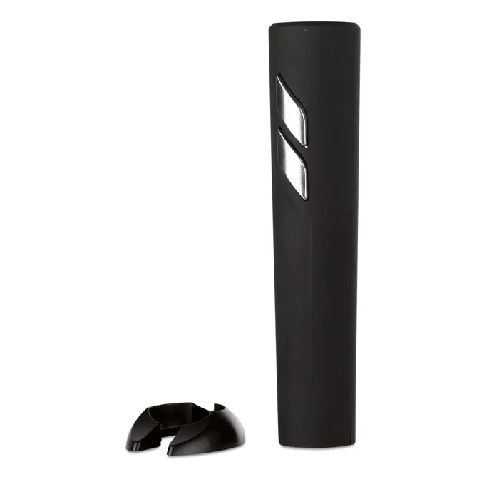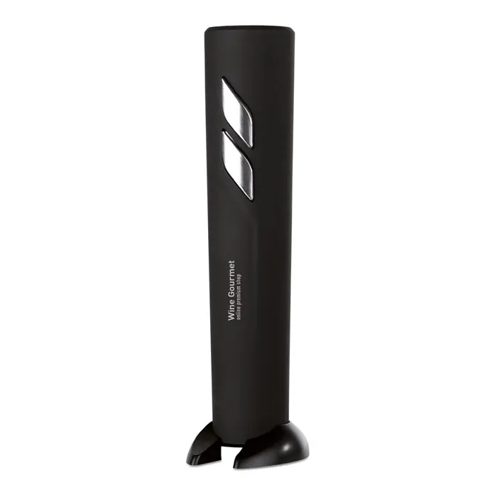 Električni otvarač za boce vina s kućištem od ABS-a u crnoj mat obradi, uključuje stalak s rezačem folije, radi na 4 AA baterije (nisu uključene)
