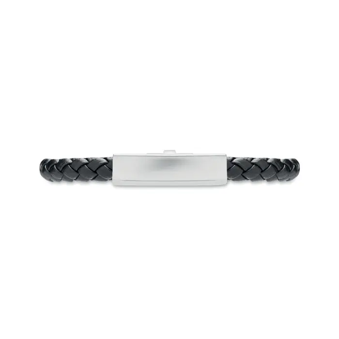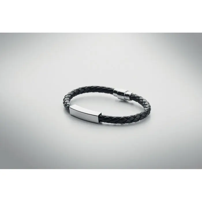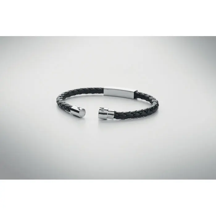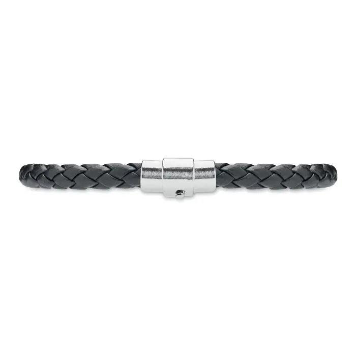 €1.26Pletena narukvica od umjetne kože s poliranim čeličnim dijelovima, kopča na pritisak, opseg zapešća 18 cm